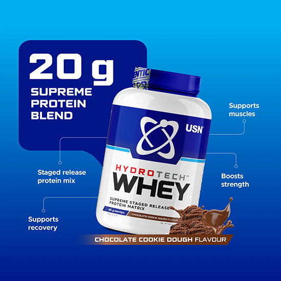 Hydrotech™ Whey is a supreme protein blend that helps you gain lean muscle, enhances recovery and significantly increases strength. This unique blend of whey and wheat protein is aimed at enhancing the effect of training and giving you the results that you are pushing for. The staged protein release ensures the muscles are fully fuelled over extended time periods.