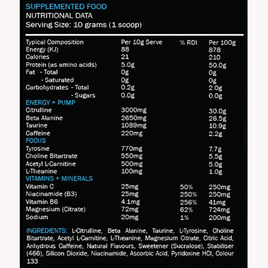Designed to fuel your focus and intensity, it features powerful pump and focus enhancing ingredients. Fortified with essential vitamins, this formula supports energy metabolism and in two great flavours it tastes amazing.